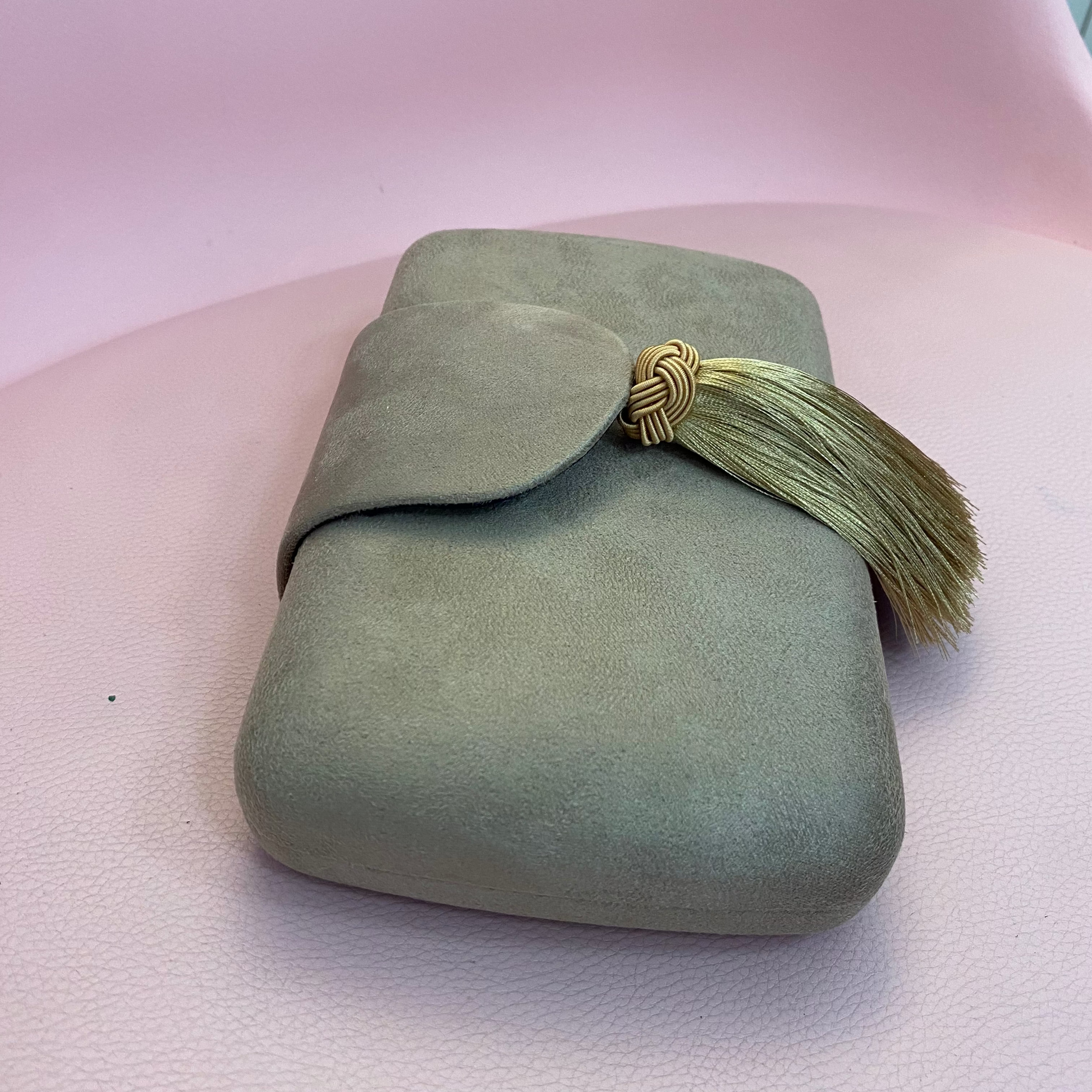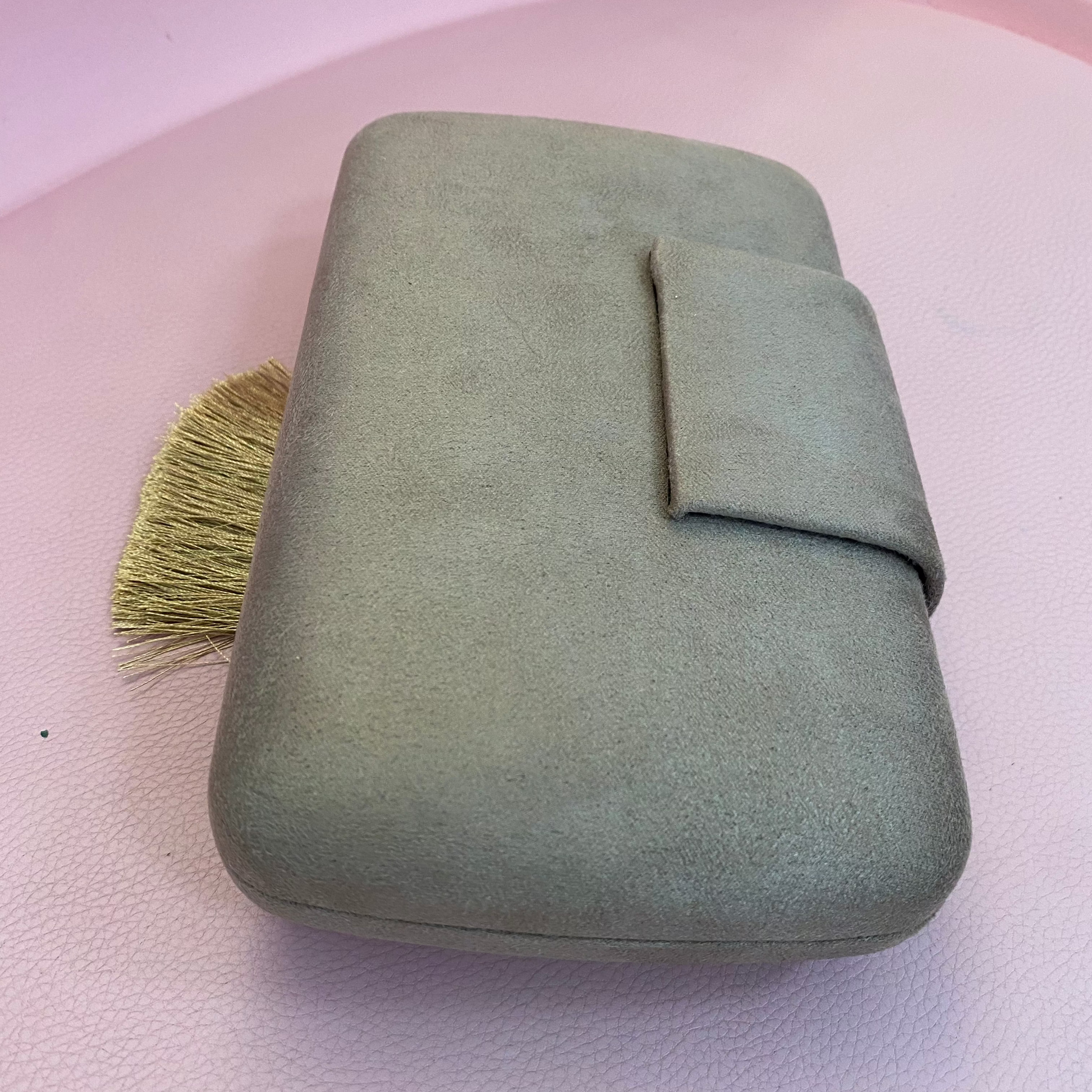 Sac à main orné de plumes. Fermeture dorée avec paillettes. Chaîne dorée pour le porter en bandoulière.