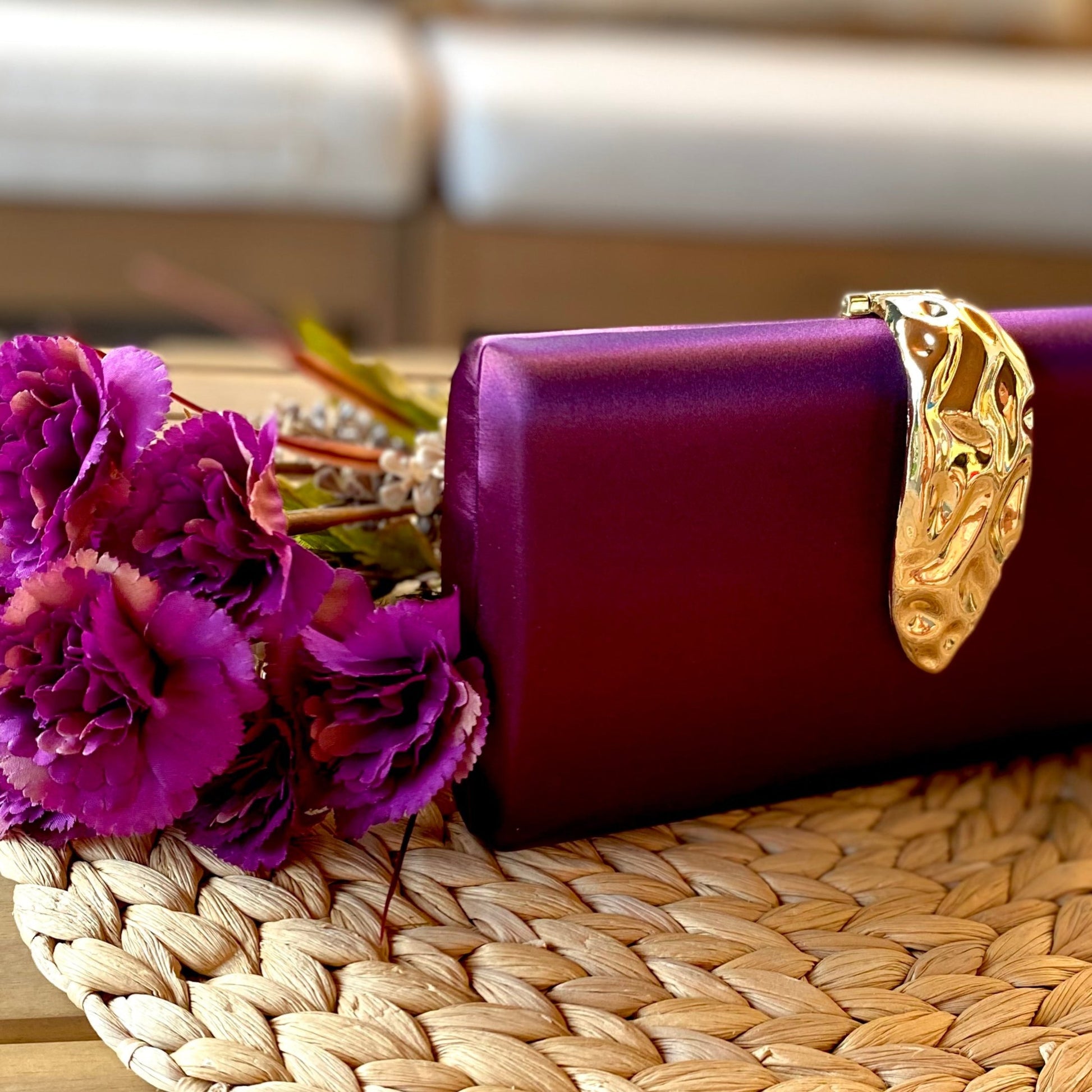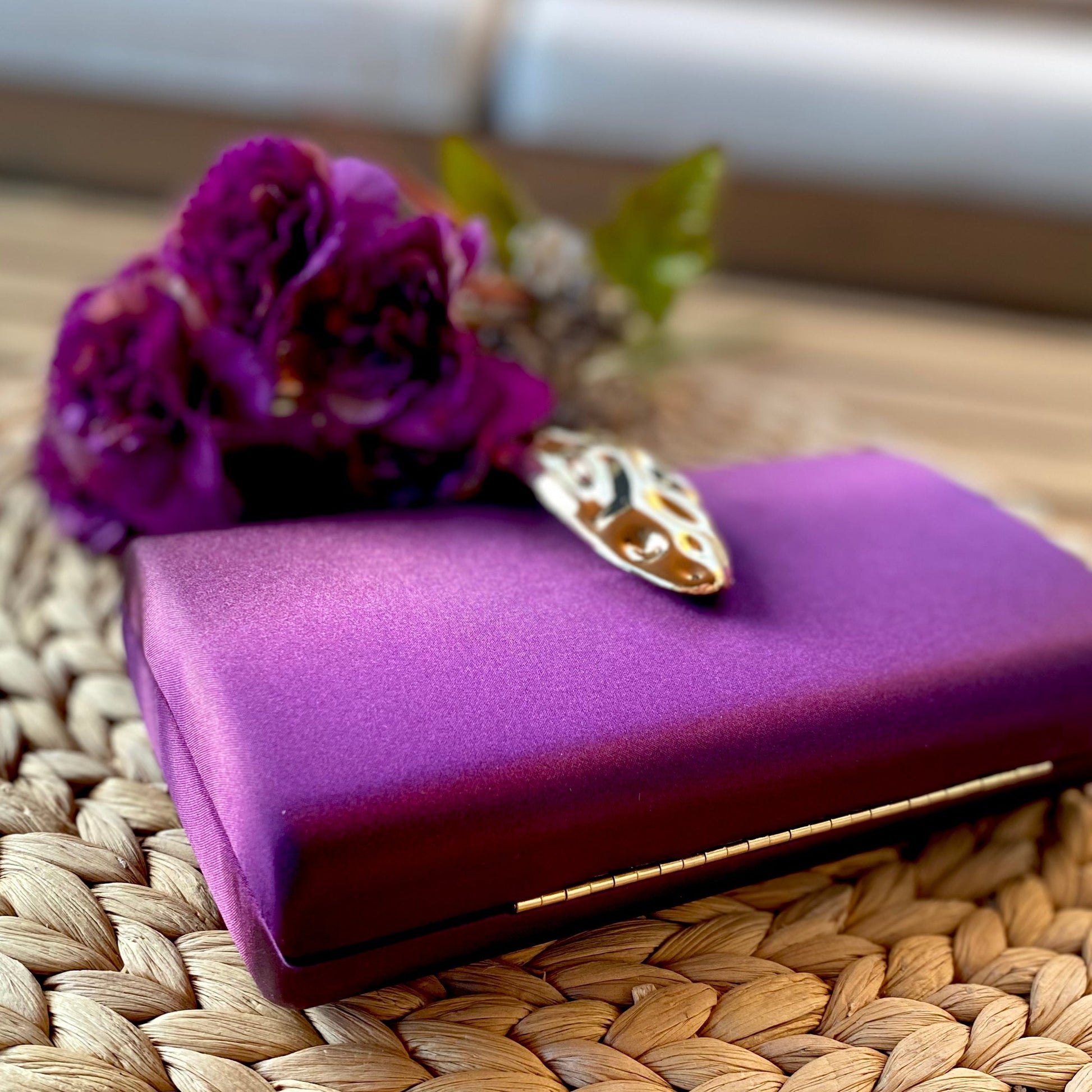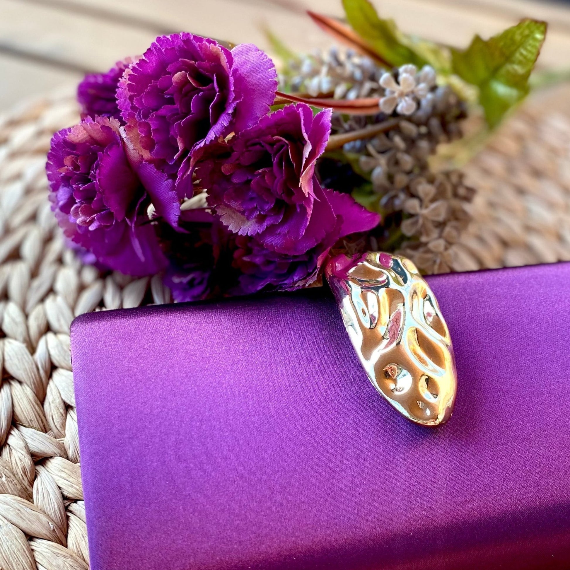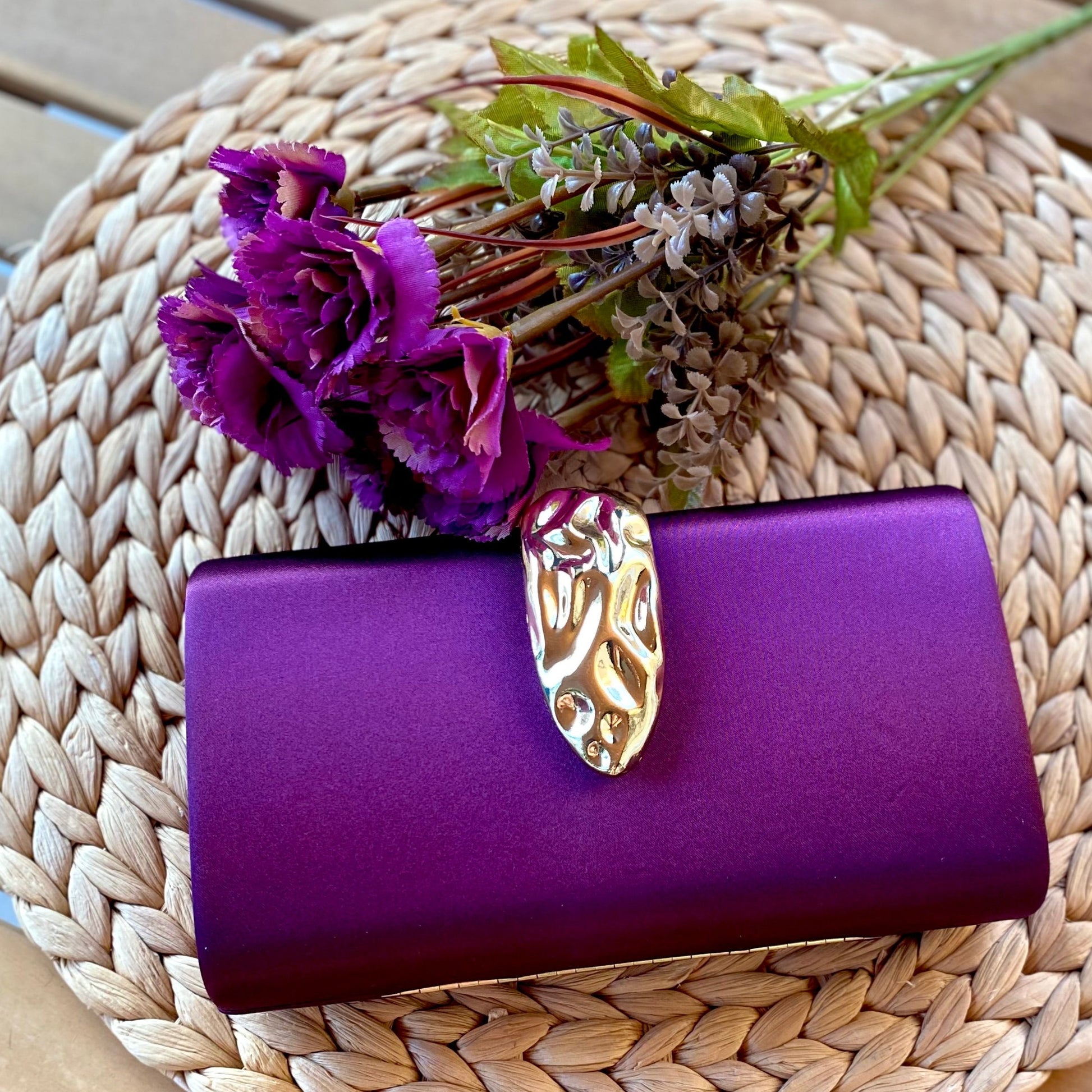Sac à main orné de plumes. Fermeture dorée avec paillettes. Chaîne dorée pour le porter en bandoulière.