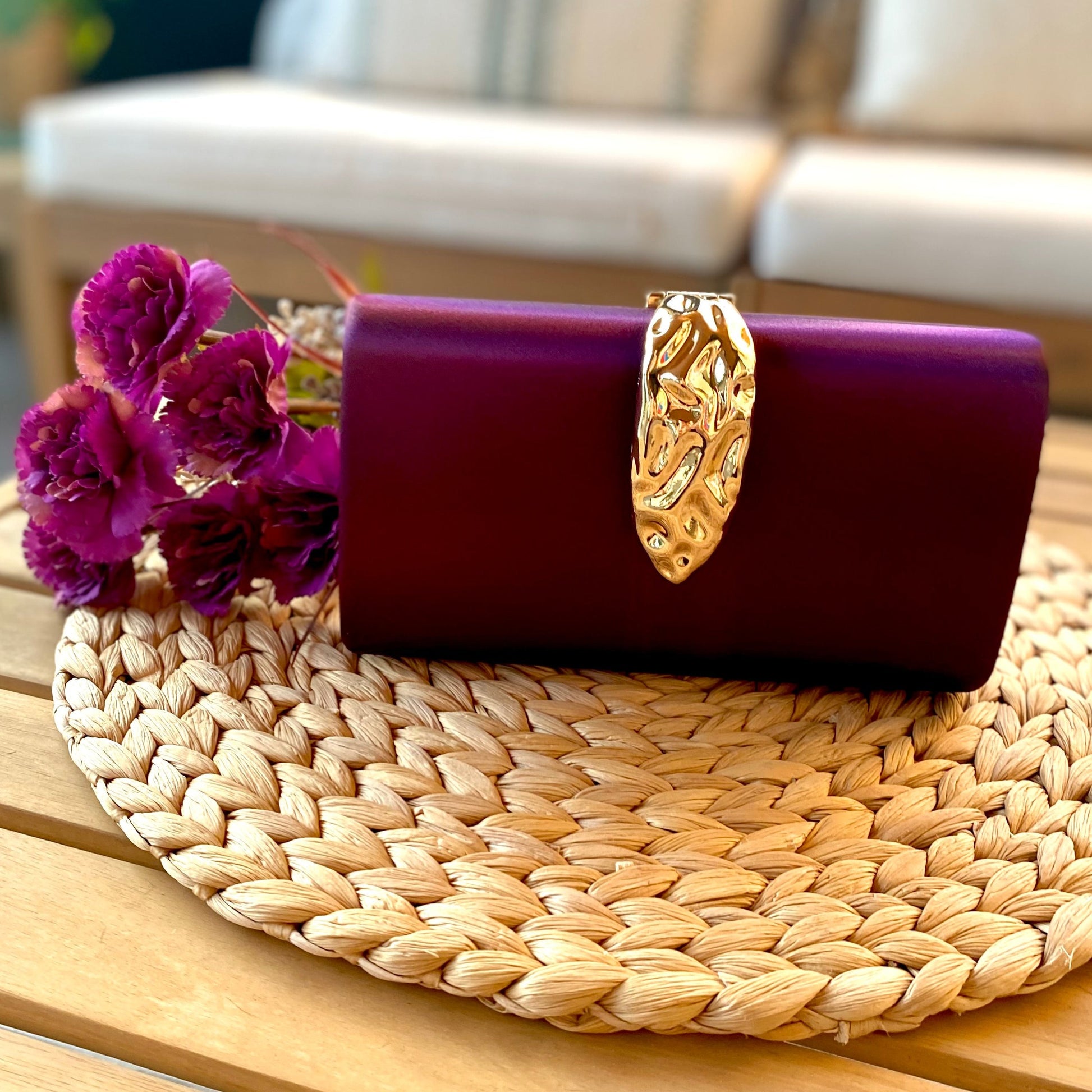 Couleur rose. Fermeture à clic doré avec paillettes. Matière synthétique végétalienne.