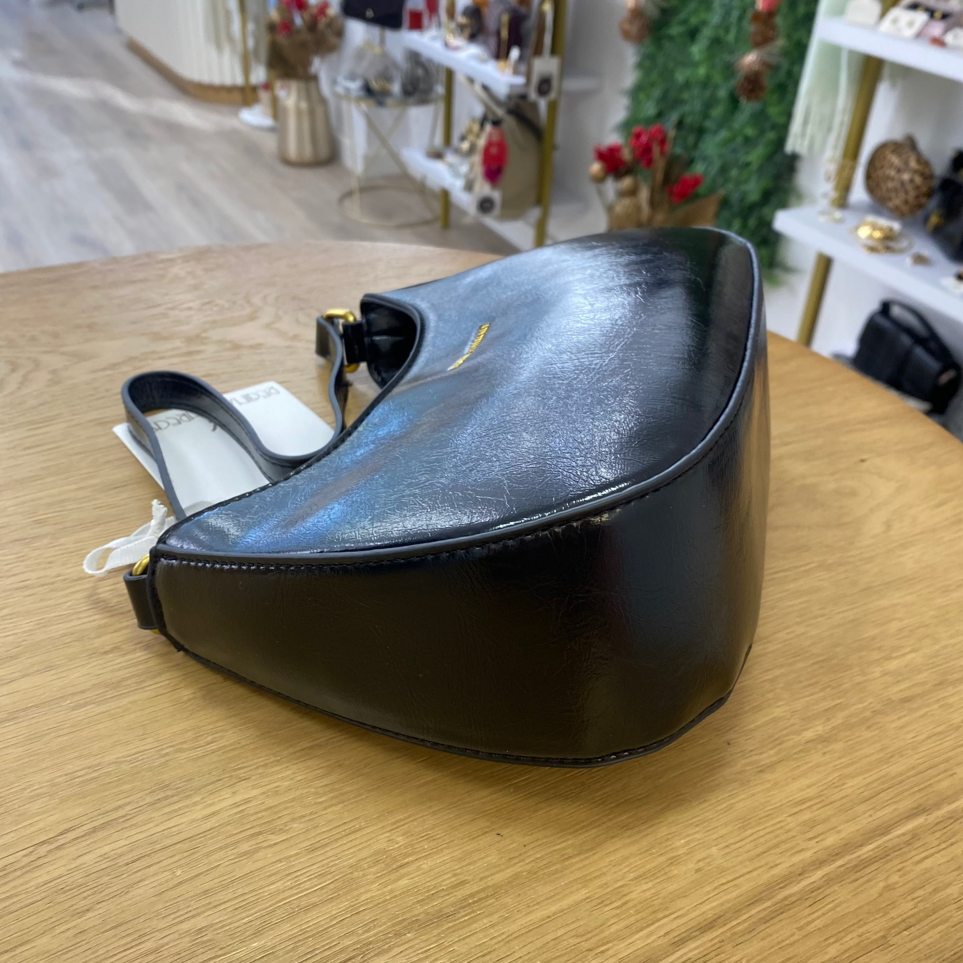 Sac à main en tissu velouté orange. Fermeture à clic sur rabat. Chaîne dorée pour le porter en bandoulière.