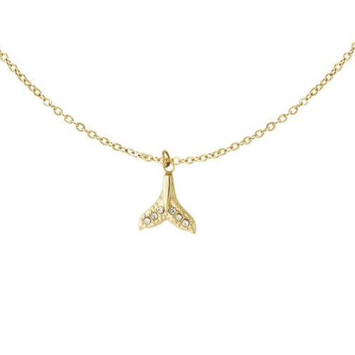 Collar de acero inoxidable con forma de cola de ballena con circonitas y acabado oro - mbyou