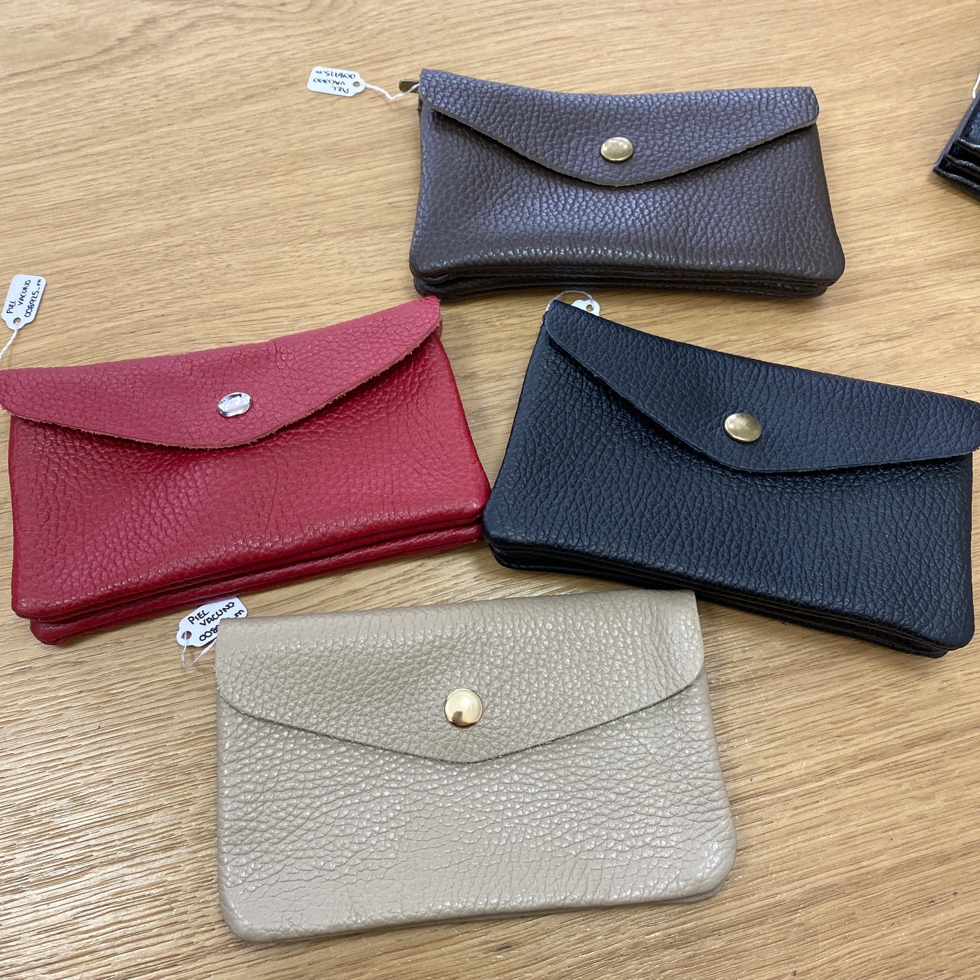 Monedero de tamaño mediano que contiene dos compartimentos y a parte otro con cremallera. Es 100% piel de vacuno con un acabado liso y en varios colores.