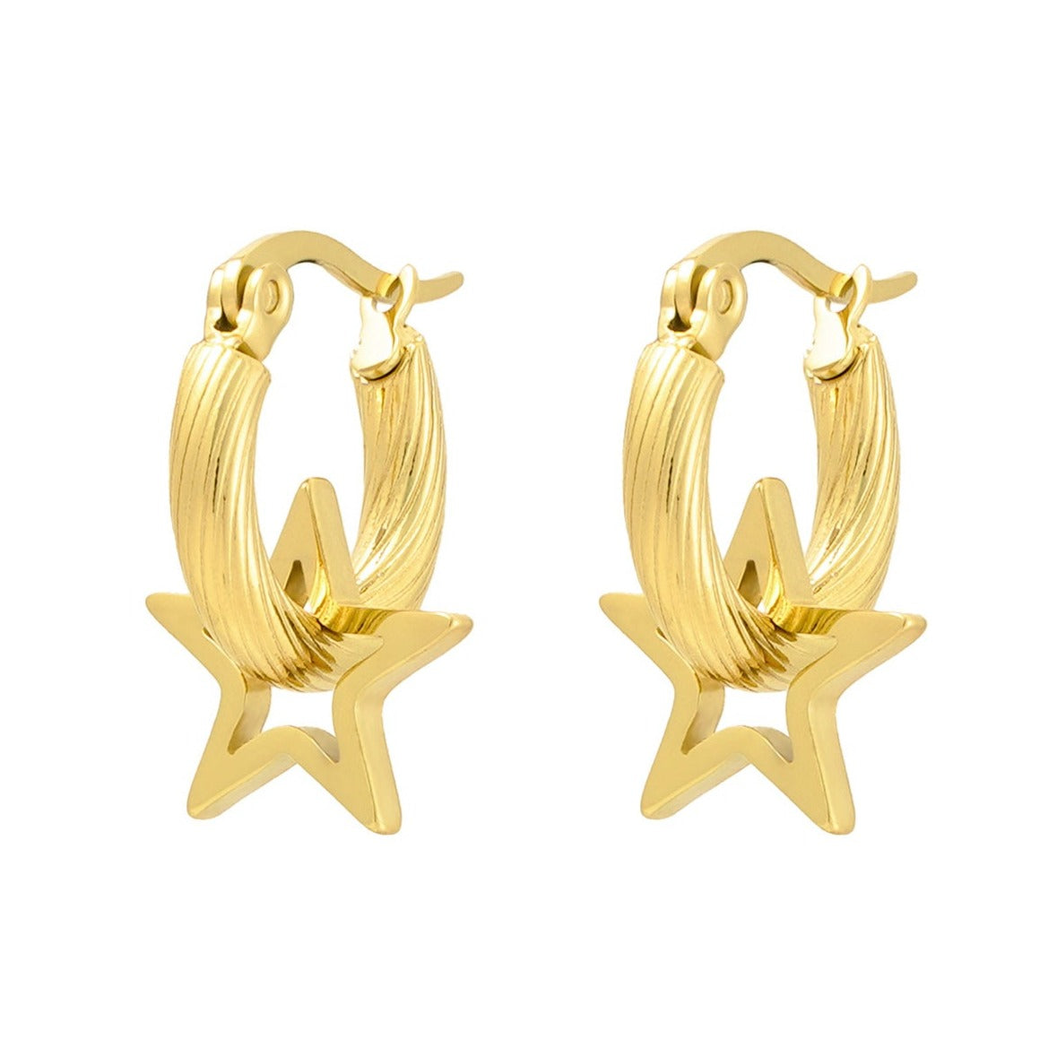 Créoles en acier avec boules dorées