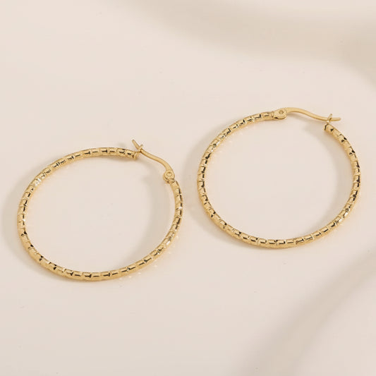 Pendientes de acero medianos en forma de aro con textura rugosa