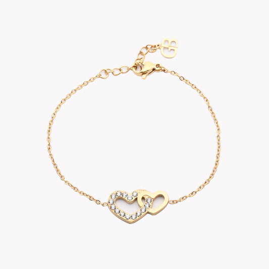 Cofre joyero regalo beige pequeño con flores de jabón y pulsera de acero corazones enlazados