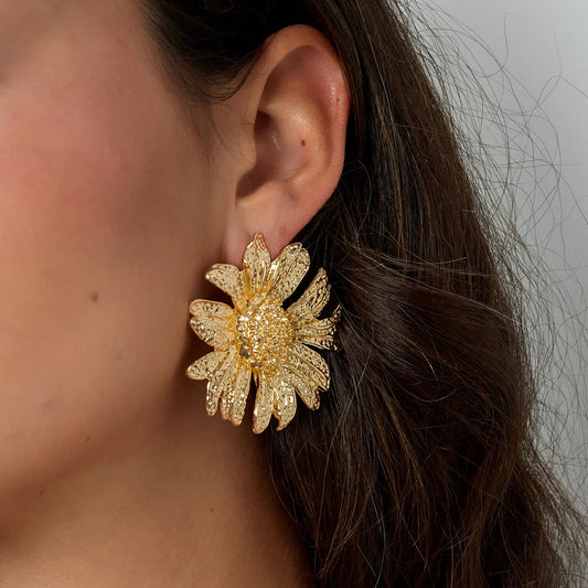Pendientes grandes en forma de flor acabado oro