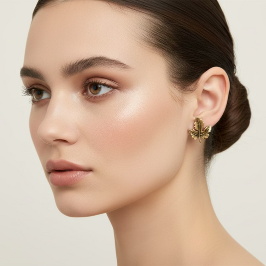 Pendientes de acero en forma de hoja en color oro rosa efecto oxidado