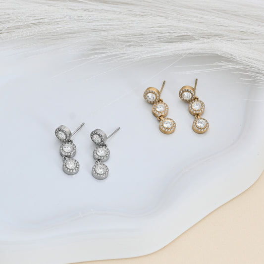 Pendientes acero colgantes redondos con circonita y acabado plata