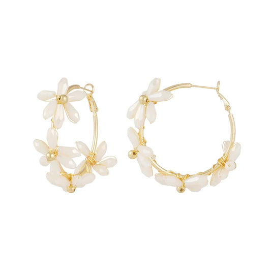 Pendientes de acero largos aro con flores de cristales acabado oro