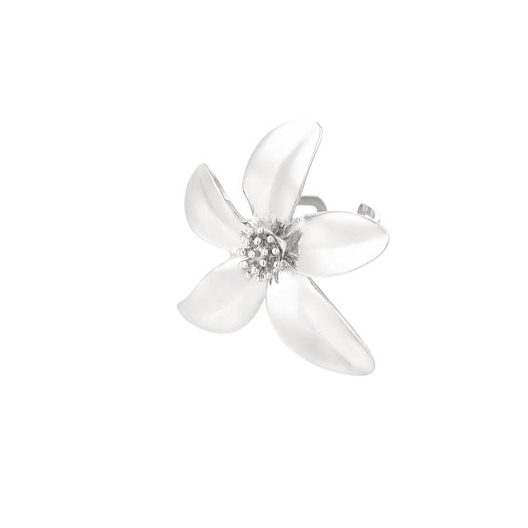 - Anillo de acero inoxidable en forma de flor grande acabado plata.
