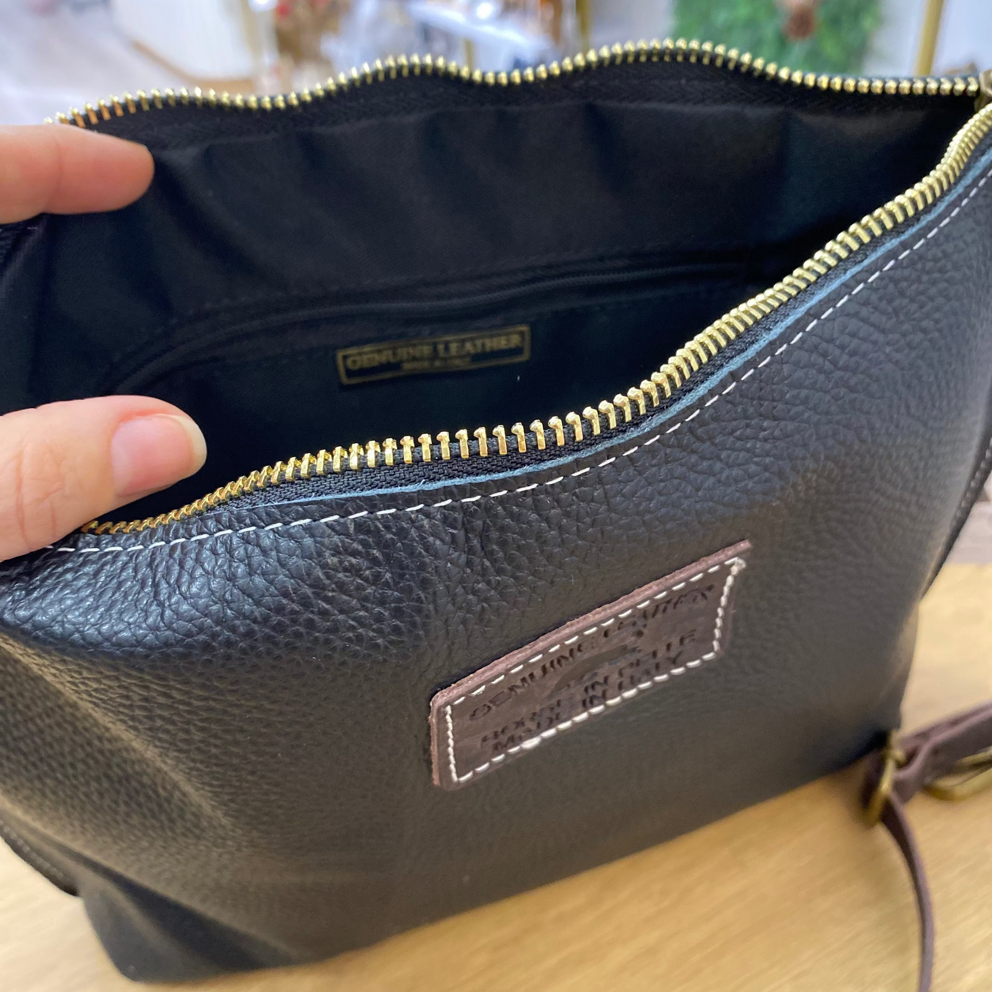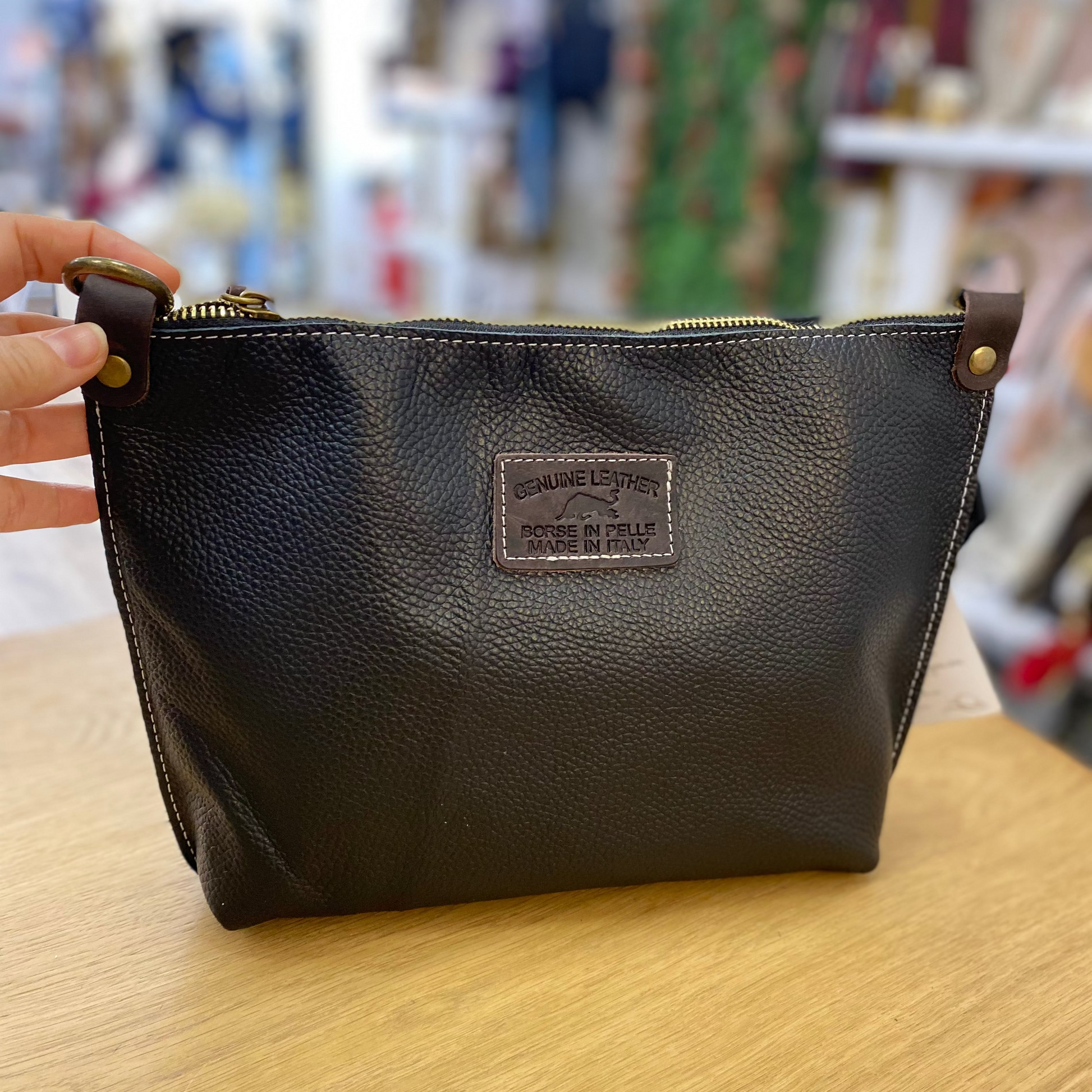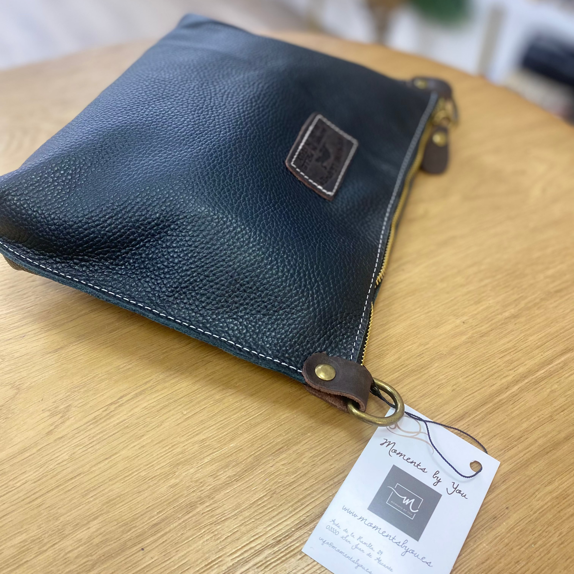 Bolso bandolera de piel 100% vacuno pespuntes en color negro