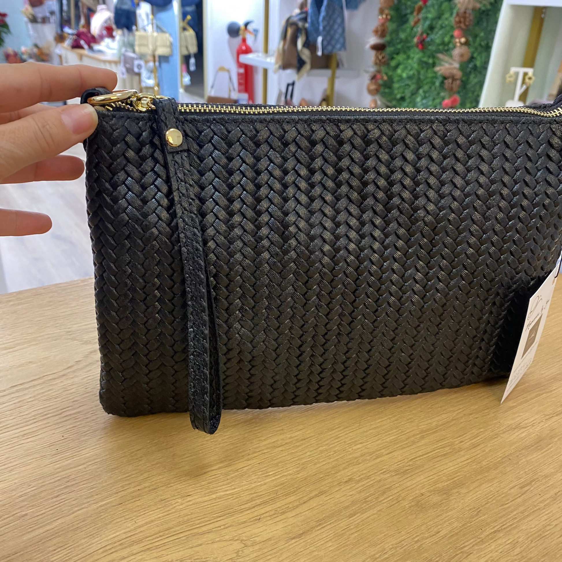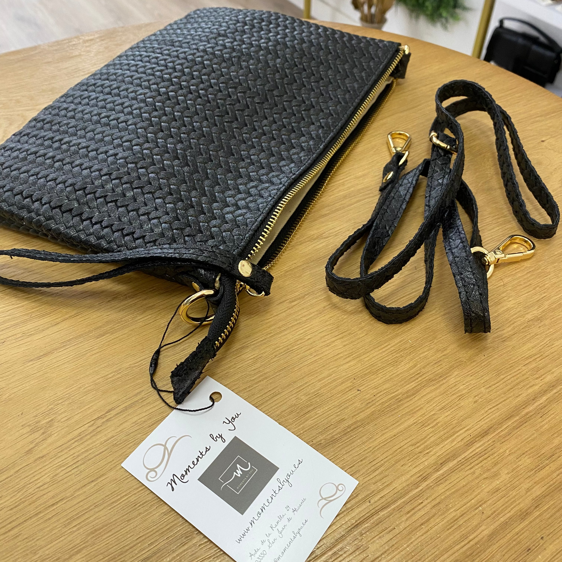Bolso bandolera de piel 100% vacuno trenzado color negro