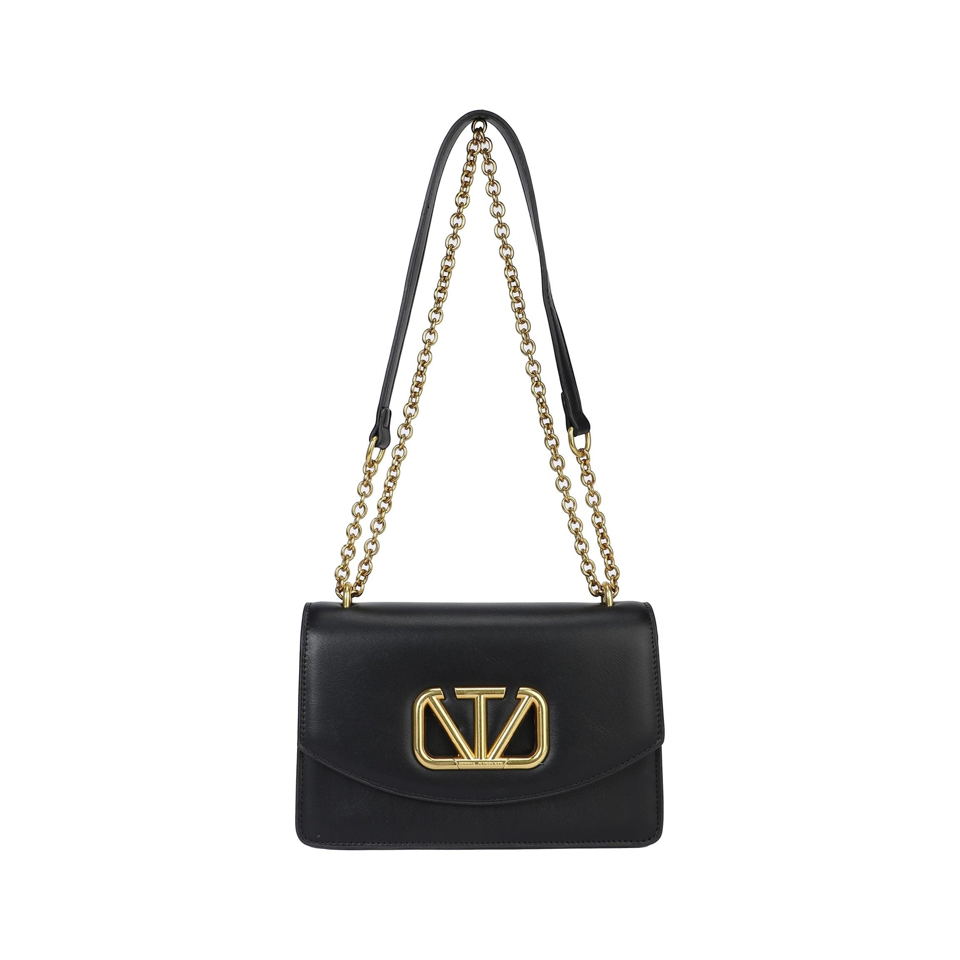 Bolso bandolera rígido con solapa y detalle de logo dorado color negro - mbyou