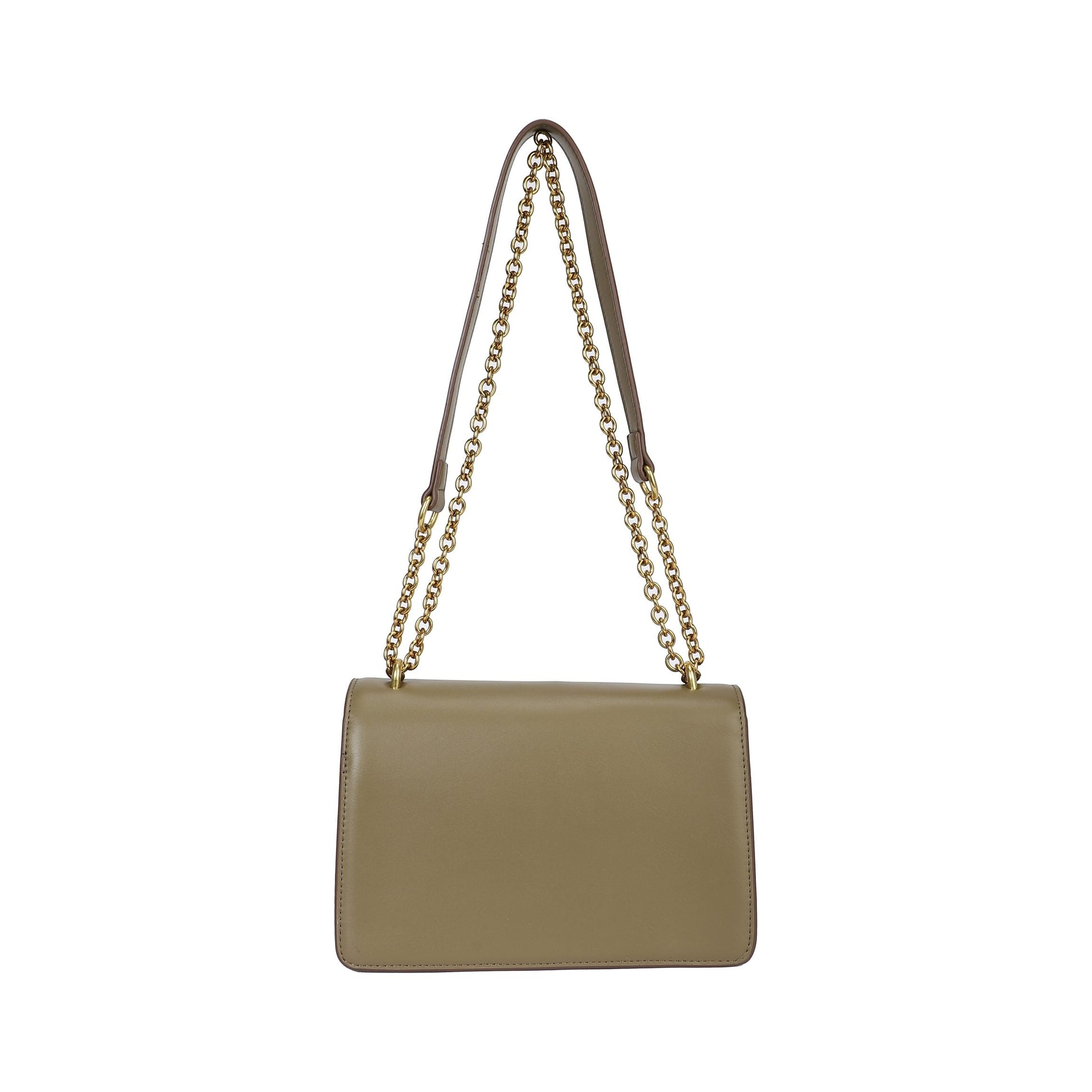Bolso de mano y bandolera con bandolera del mismo color del bolso y cadena dorada efecto envejecido. Rígido tipo cartera. Forro interior de tela. Bolsillos interiores, uno de ellos con cremallera. Detalles dorados envejecidos.