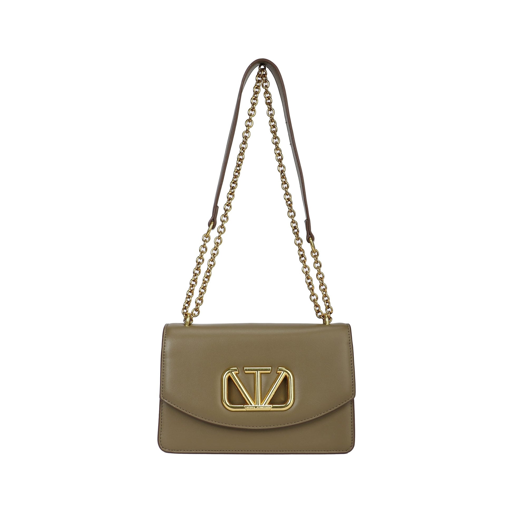 Bolso bandolera rígido con solapa y detalle de logo dorado color verde oliva - mbyou