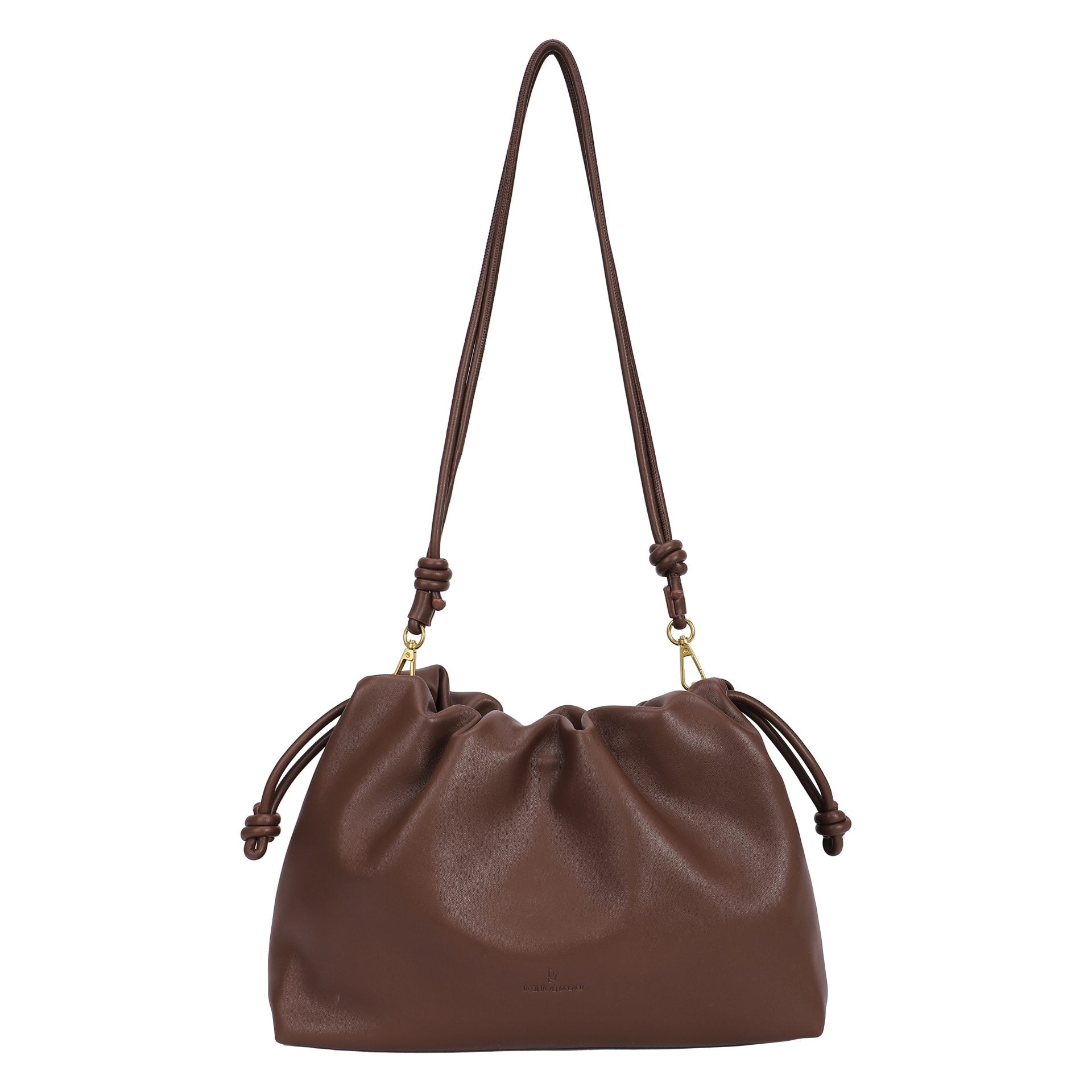 Bolso bandolera liso tipo saco con detalle de nudos en color marrón - mbyou