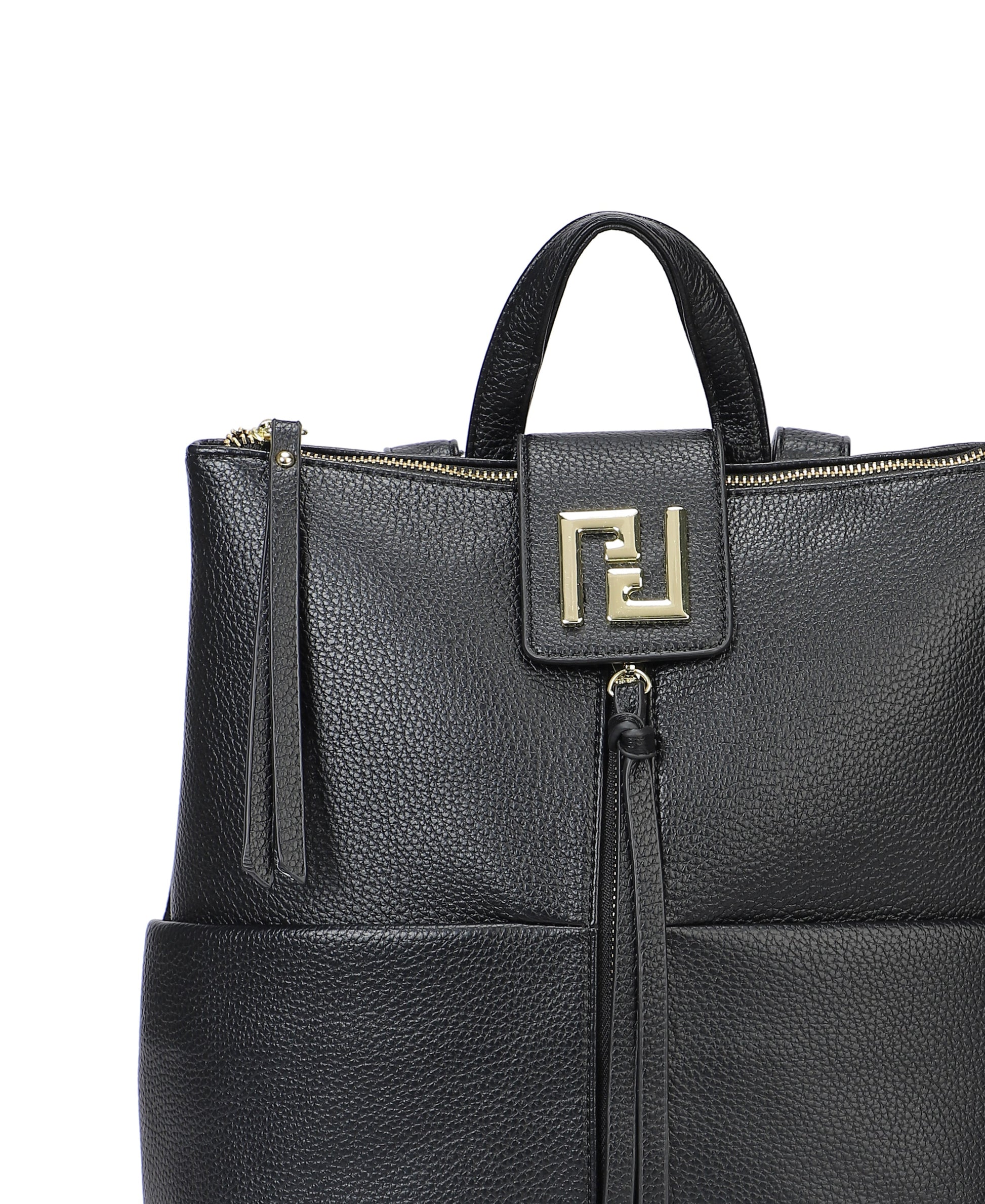 Mochila efecto piel tipo saco con cierre con cordones y cremallera. Detalle dorado de logo en el exterior en una solapa con click para asegurar. Dos bolsillos exteriores sin cremallera en la parte delantera y otro con cremallera en la parte trasera de la mochila. Asas bandoleras regulables. Interior forrado con otros dos bolsillos interiores uno con cremallera y el otro sin.