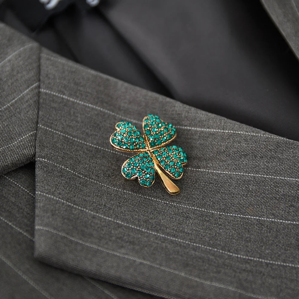- Broche en forma de trébol con circonitas en las hojas en color verde y con acabado oro.