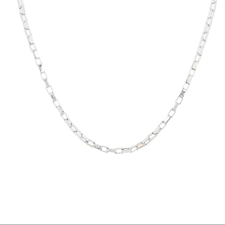 Cadena con eslabones pequeños y rectangulares en acabado plata