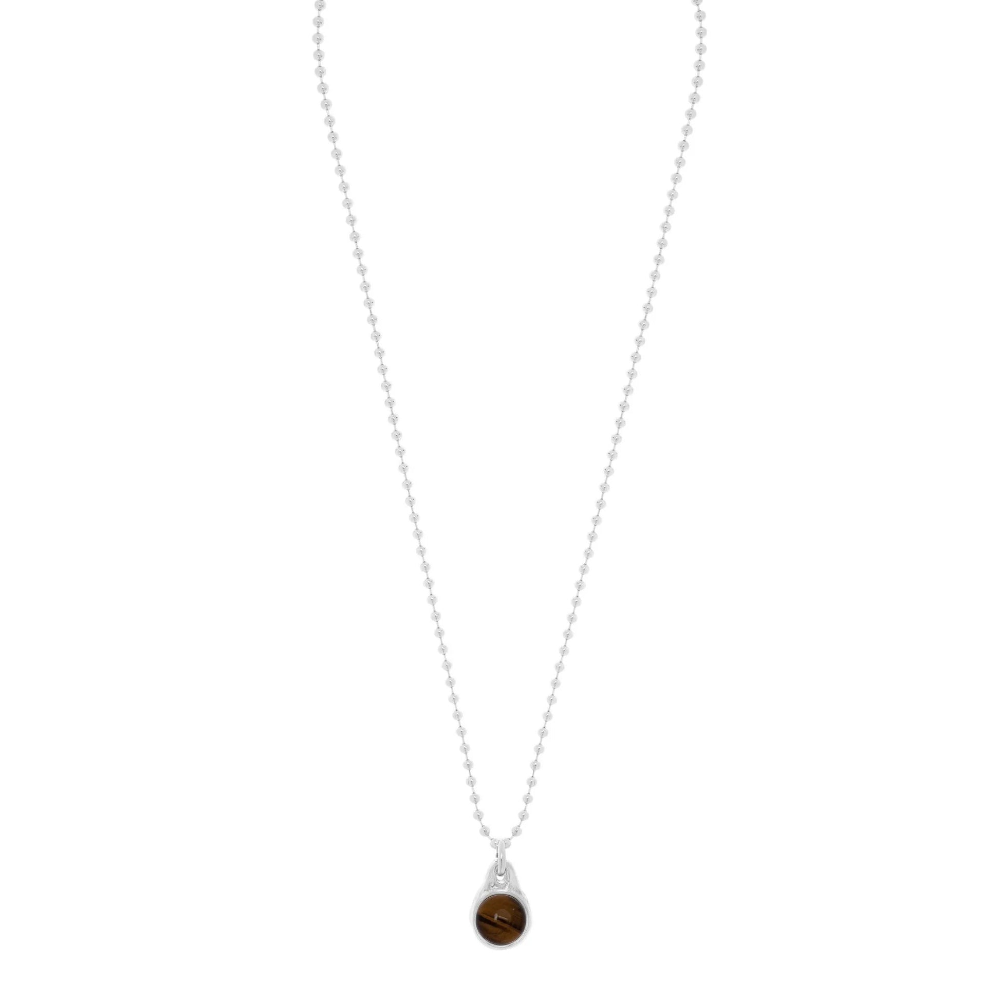 Collar baño de plata s925 con bolitas y piedra natural semipreciosa de ojo de tigre acabado plata - Vidda jewelry - mbyou