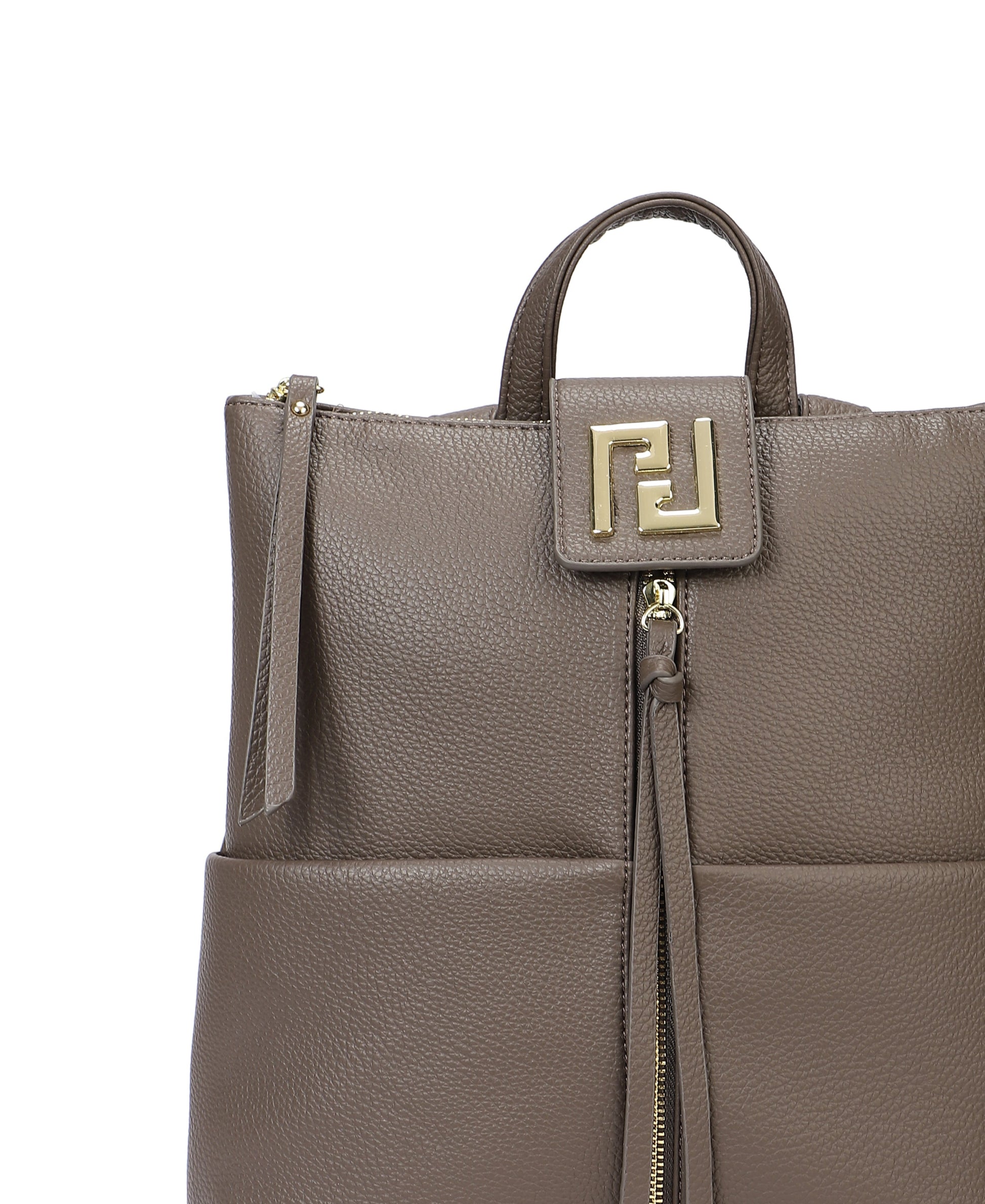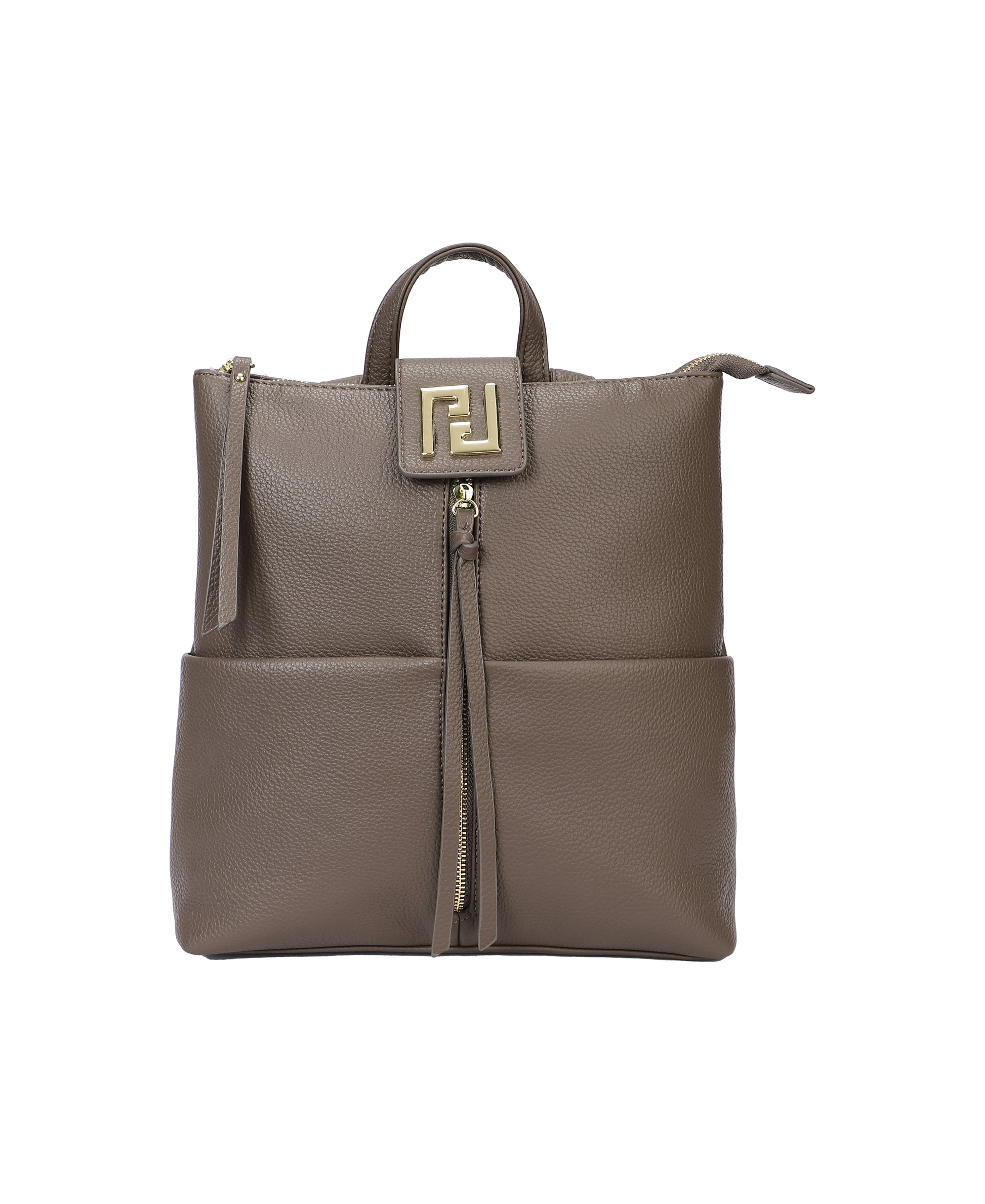 Mochila cuadrada efecto piel con cierre cremallera y detalles dorados color taupé -mbyou