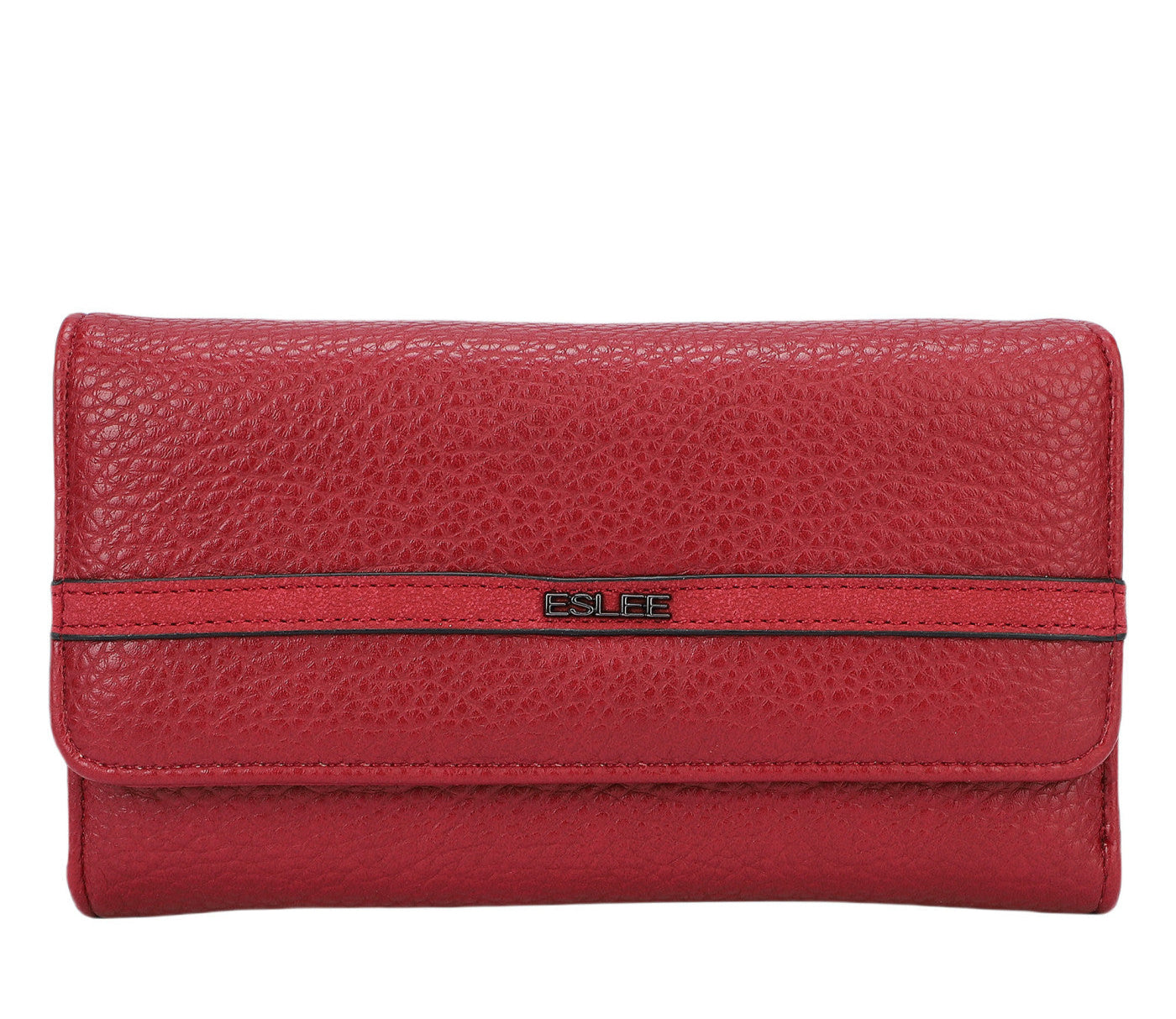 Monedero en formato solapa de tamaño grande y efecto piel en color rojo fuerte - mbyou