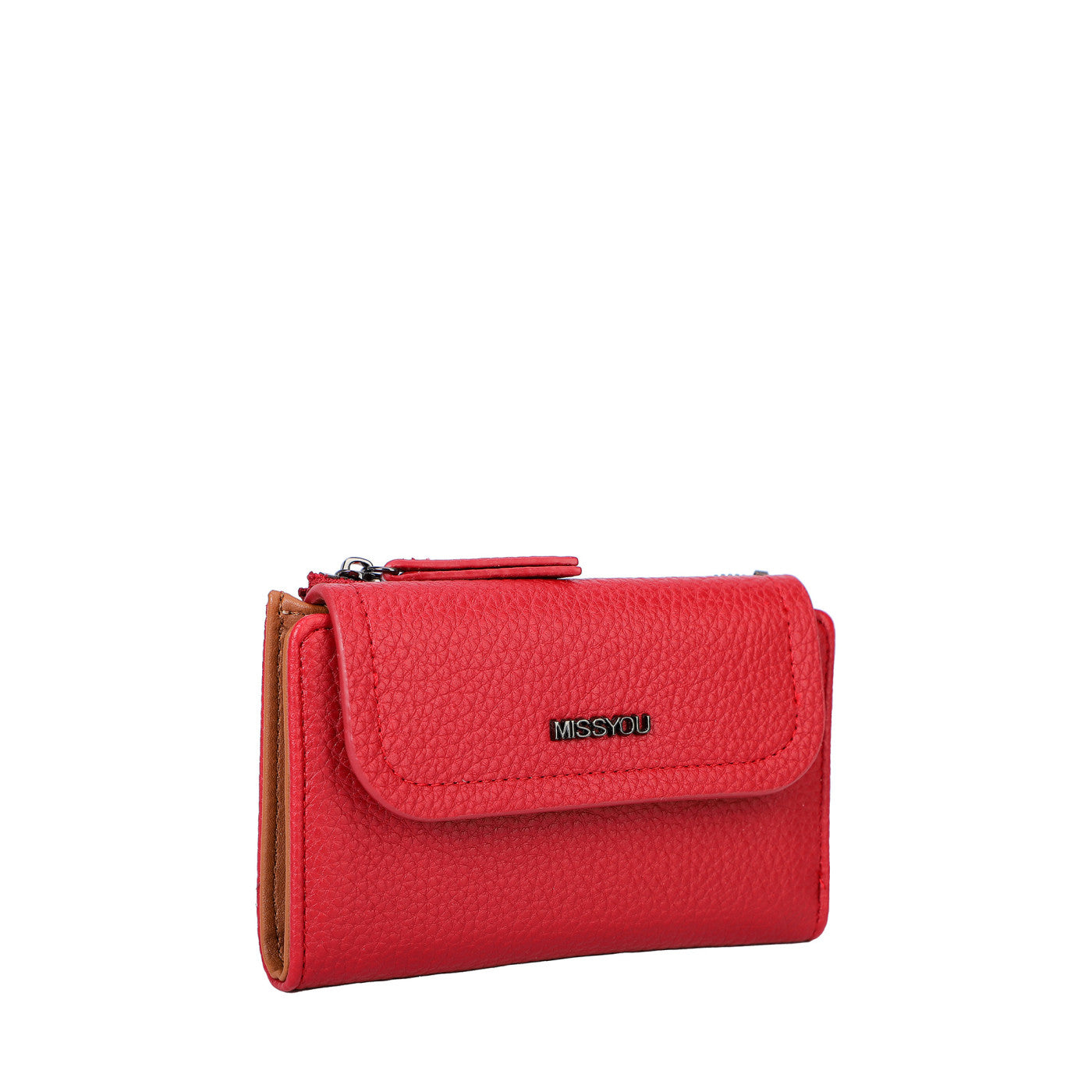 Monedero en formato solapa y cremallera de tamaño pequeño efecto piel en color rojo fuerte - mbyou