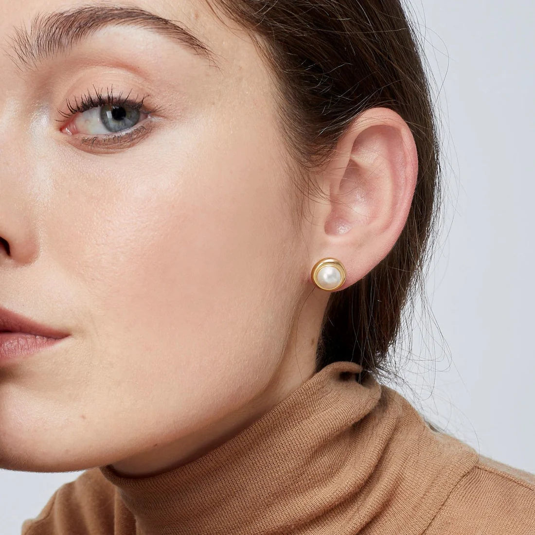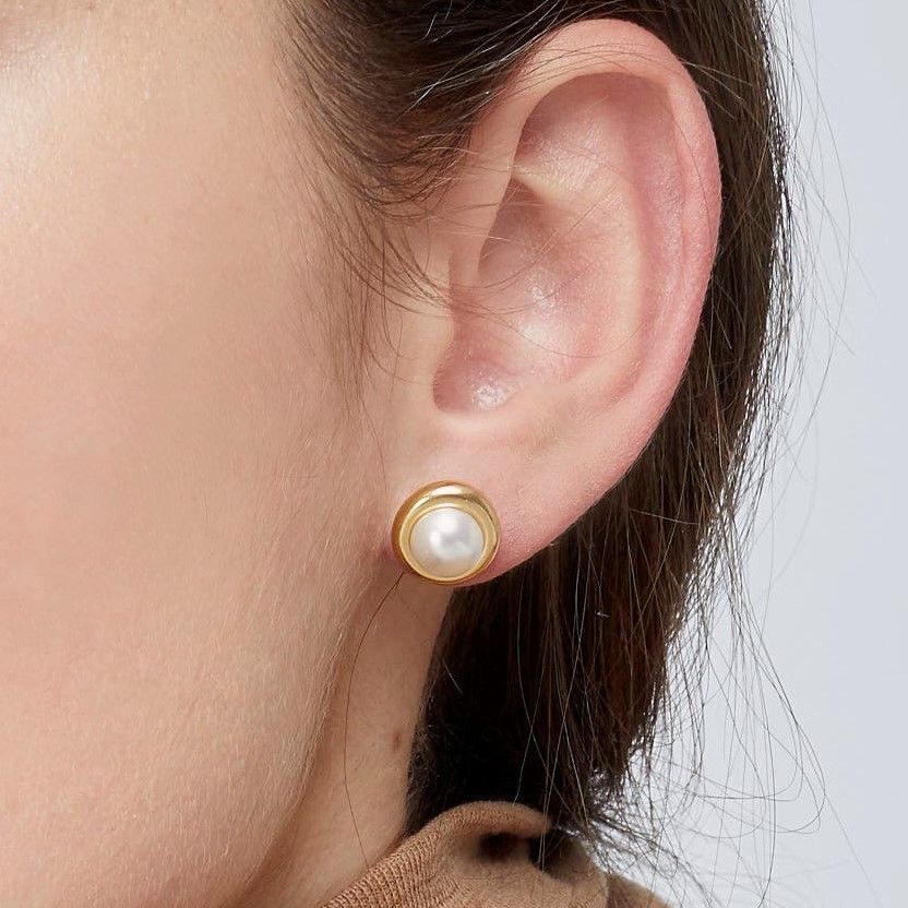 Pendientes botón circulares bañado en oro de 24k con perlas cultivadas acabado oro - mbyou