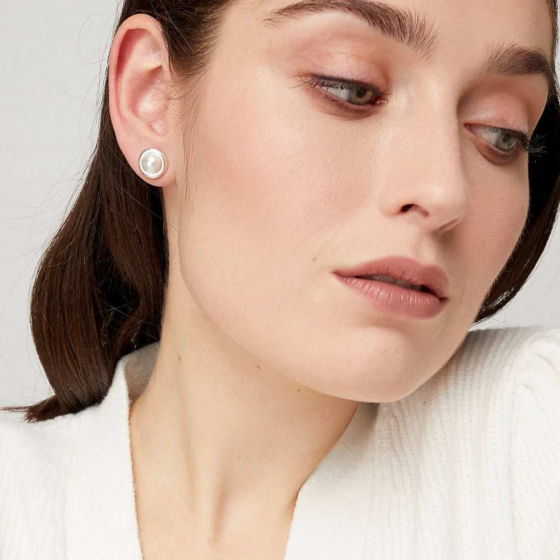Pendientes botón circulares plata S925 y perlas naturales cultivadas acabado plata - mbyou