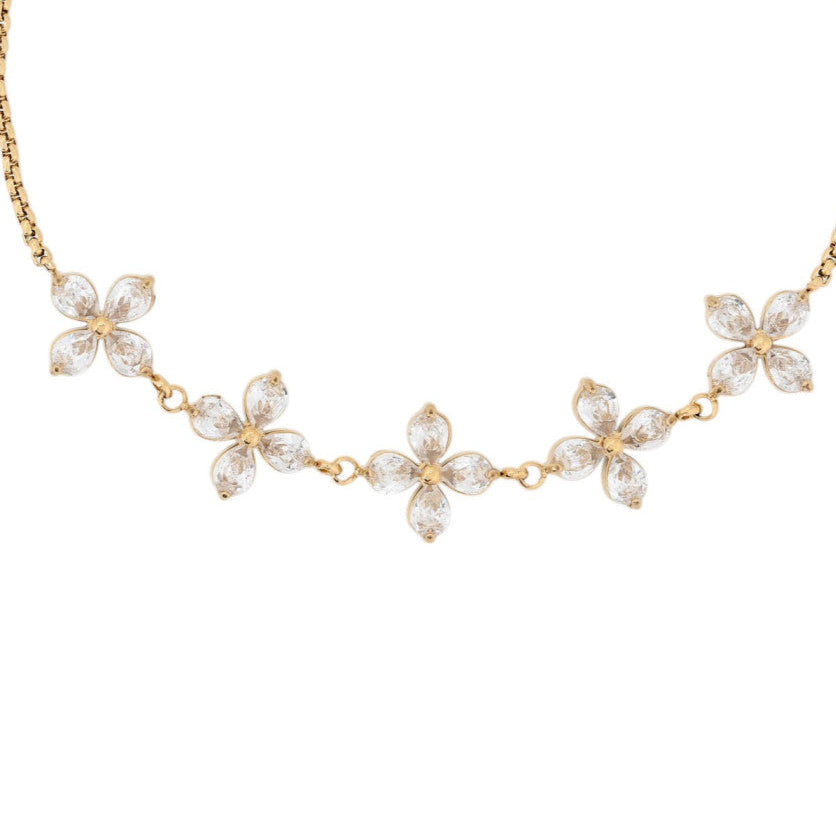 Pulsera de acero inoxidable con diseños florales con circonitas en cada pétalo acabado oro - mbyou