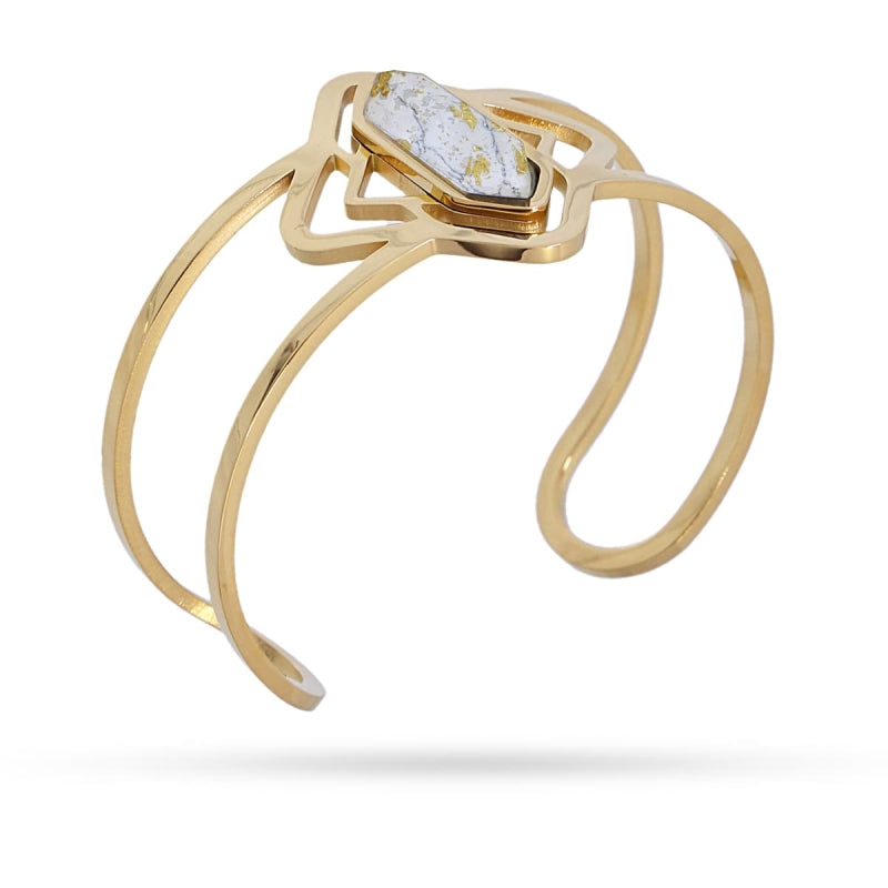 Pulsera de acero quirúrgico con una piedra de textura mármol en blanco con acabado oro - mbyou