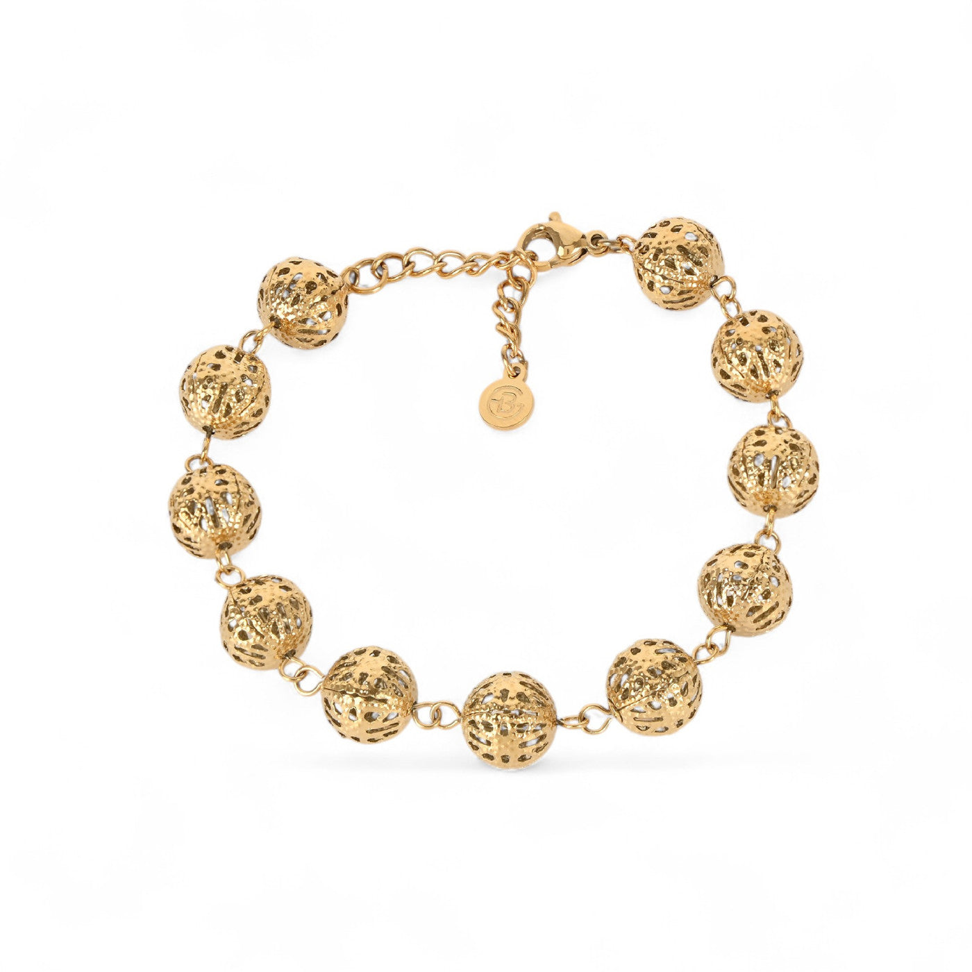 Pulsera de metales reciclados de esferas con textura calada acabado oro - mbyou