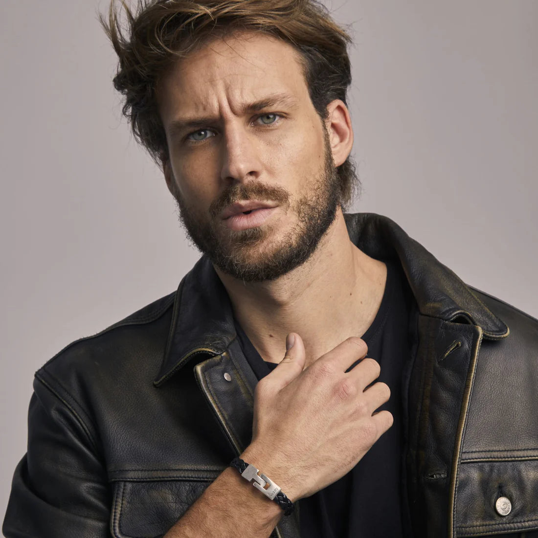 Pulsera unisex de plata S925 con cuero natural trenzado- Vidda jewelry - mbyou