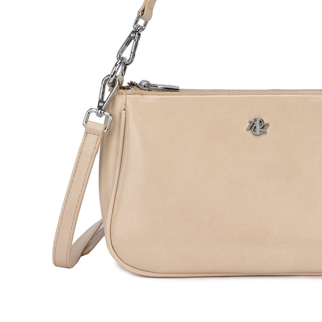 Bolso de hombro en beige liso y brillante.