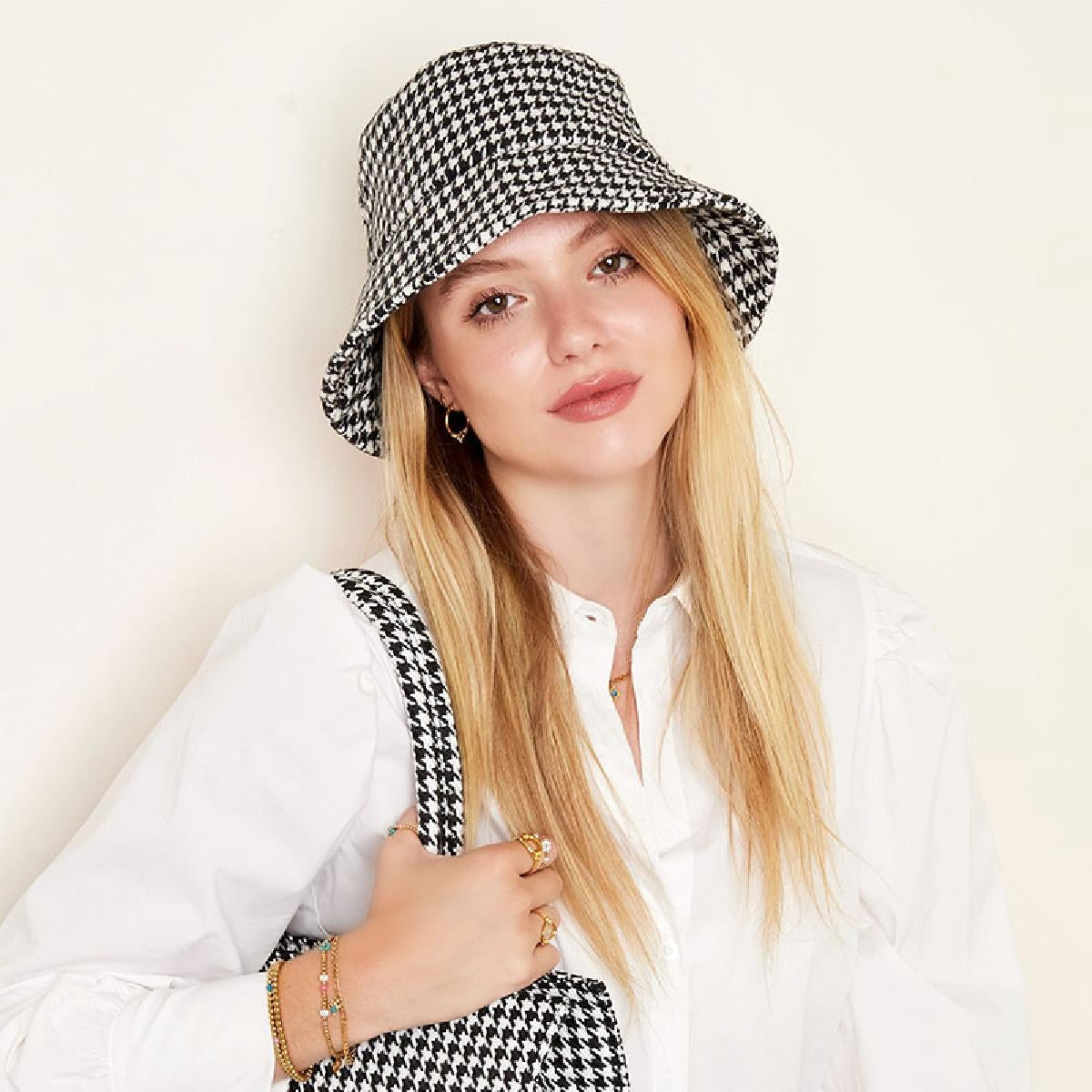 Sombrero de pescador con estampado de cuadros. Talla única regulable con cordones interiores. Interior forrado guateado.